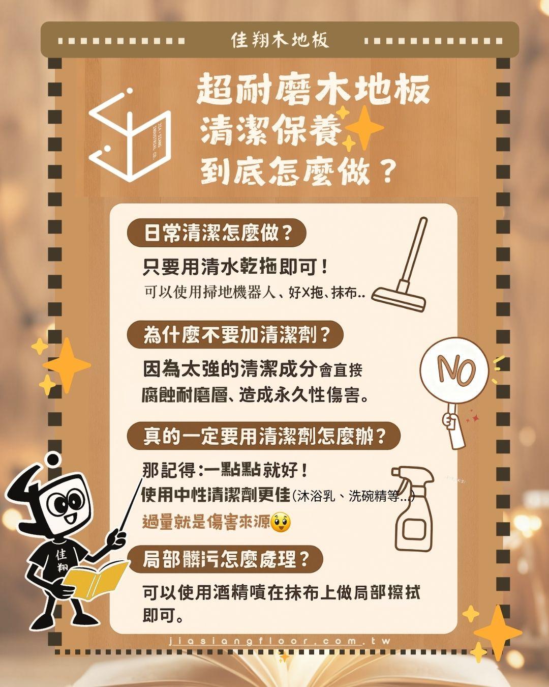 超耐磨木地板平常真的非常好顧,只要避開錯誤清潔法,