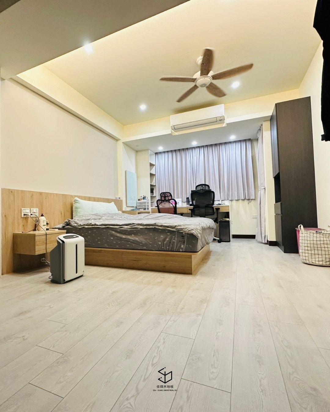以冷灰色木紋為主調,結合北歐風簡約線條,
