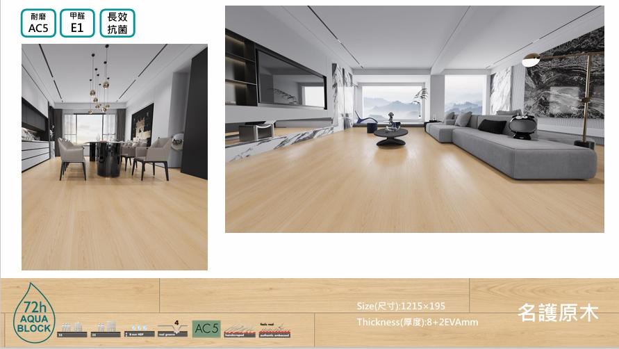 作為全球木製品領先者,長時效 防水、SGS認證長效抗菌功能、 甲醛含量符合歐盟E0等級、耐 磨程度達歐盟AC5、AC4等級, 讓顧客使用的安心、住的開心, 這才能讓我們放心