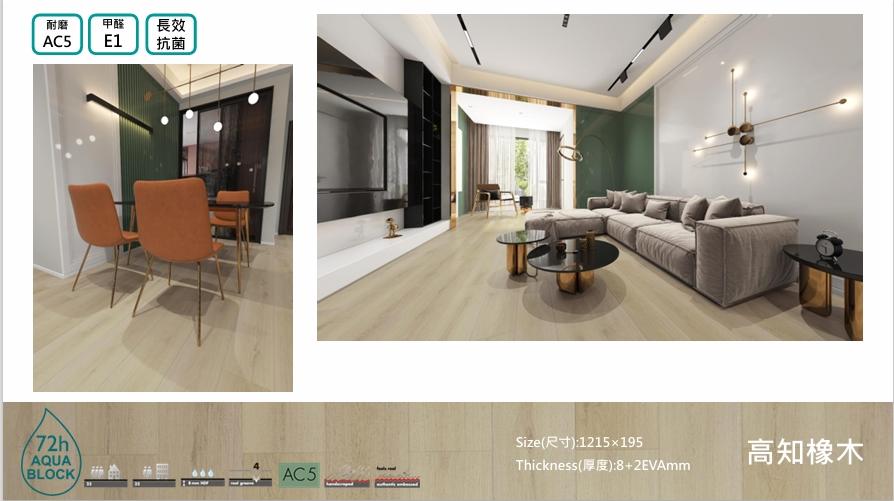 作為全球木製品領先者,長時效 防水、SGS認證長效抗菌功能、 甲醛含量符合歐盟E0等級、耐 磨程度達歐盟AC5、AC4等級, 讓顧客使用的安心、住的開心, 這才能讓我們放心